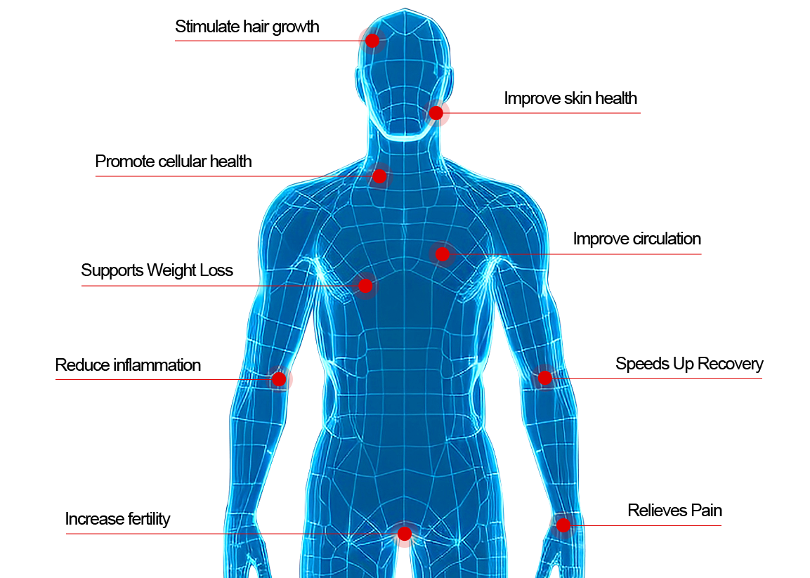 Infrared light improves blood flow to hair follicles, promoting healthier and faster hair growth.