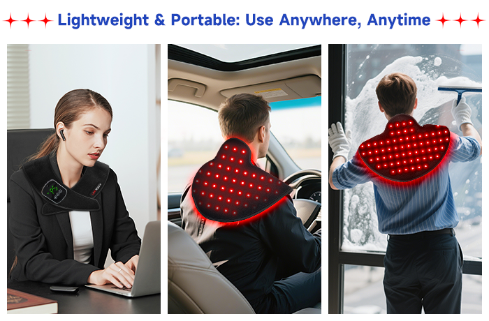 It’s ideal for anyone dealing with neck and shoulder stiffness, soreness, or muscle tension, whether from long hours at a desk, workouts, or everyday stress. Always consult your healthcare provider if you have a medical condition before starting light therapy.