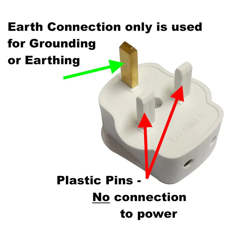 A regular plug socket found in the U.S. has three holes; two vertical slots and a round hole which is grounded to the Earth and does not carry electricity.Our Earthing mats come with a specialized cord, which features one end in the form of a round prong that is inserted into the designated grounding hole, while the other end connects to the Earthing mat itself via special snap connection.
