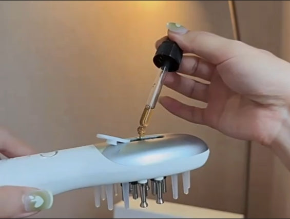 Add the appropriate hair growth serum to the comb.