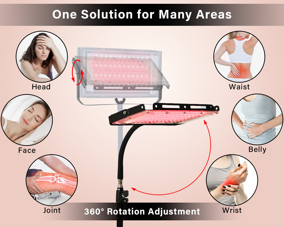 Absolutely! The lamp features a height-adjustable stand and a 360-degree rotating panel, allowing precise positioning for any body area.
