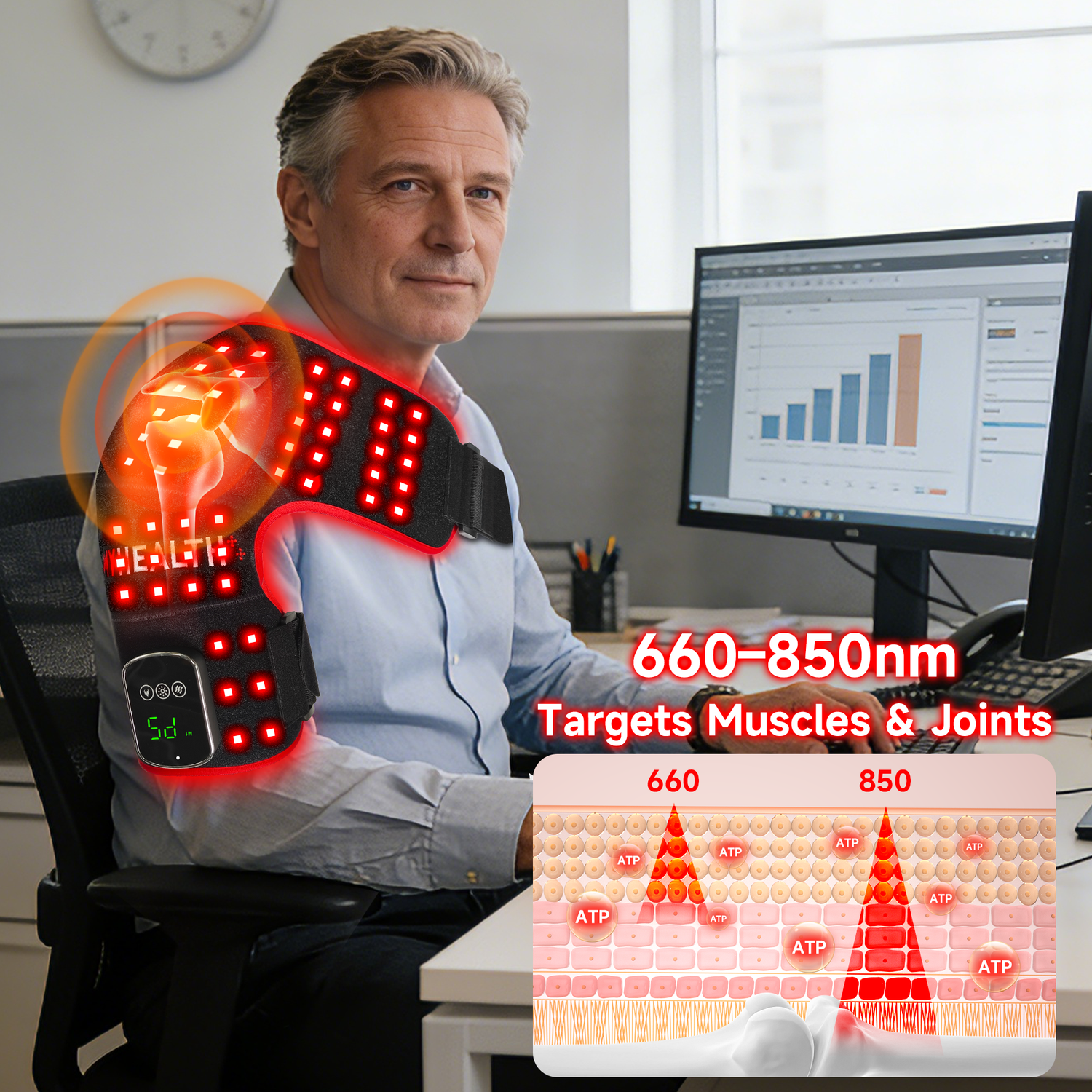 It’s ideal for anyone dealing with shoulder stiffness, soreness, or muscle tension, whether from long hours at a desk, workouts, or everyday stress. Always consult your healthcare provider if you have a medical condition before starting light therapy.
