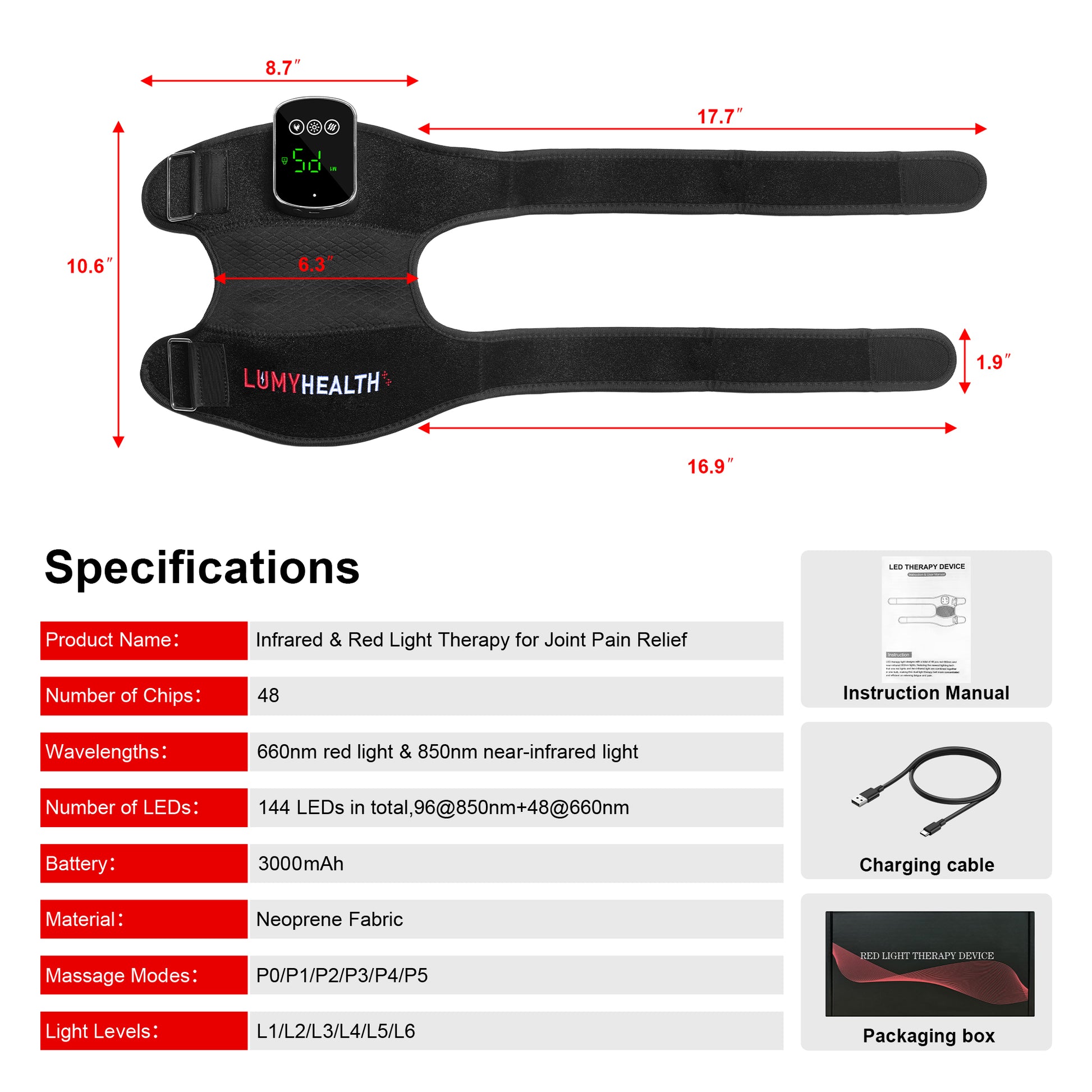 • Wavelengths:660nm red light & 850nm near-infrared light